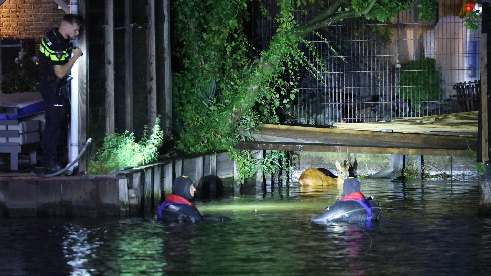 Brandweer redt spartelend hert uit water