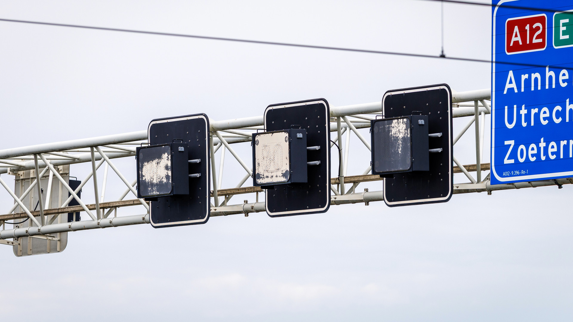 Wit uitgeslagen matrixborden boven snelweg, wat is het?