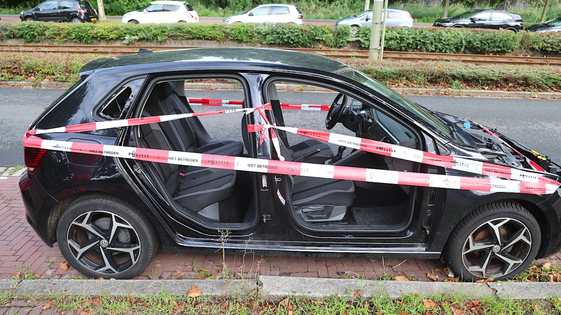 Portieren weg, motorkap foetsie: auto grotendeels gestript